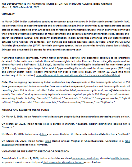 Kashmir Law & Justice Project is an advocacy organization led by Kashmiri diaspora lawyers that seeks to bring attention to, and to redress, historic and ongoing rights violations in Indian-Administered Jammu and Kashmir. This site is a public portal to primary and secondary source material regarding those violations and to some of the advocacy work in which KLJP is involved.